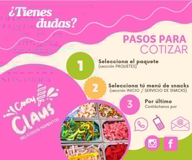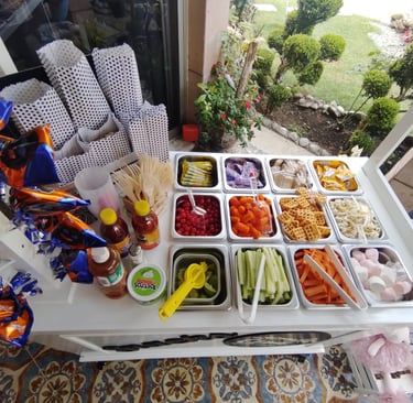 Creamos tu barra de Snacks personalizada con dulces, postres, botanas, bebidas, carnes frías y ¡algo más!